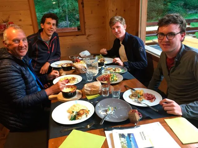 Après avoir profiter d'une pause au refuge pour profiter de la vue et de manger, nous reprendrons la descente pour rejoindre le refuge de Città di Montova puis nous descendrons par la voie normale pour profiter du téléphérique de la Punta d'Indren et des télécabines ou 4x4 pour finir la descente jusqu'à Staffal où nous prendrons un verre où repas en fonction de l'horaire d'arriver, le dernier repas n'est pas compris pour que vous puissiez mangez ce que vous souhaitiez à la fin de notre aventure !