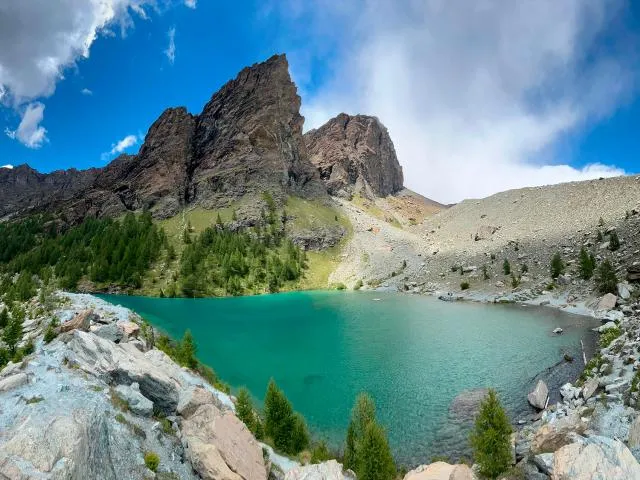 Nous marchons au pied des glaciers du Mont Rose où deux choix s’offrent à nous : la vallée des Cimes Blanches ou le Val de Véraz pour aller en direction des Glaciers du Verra qui fait partie des plus grands glaciers des Alpes. Nous passerons au mythique lac bleu si nous choisissons de rejoindre le refuge Mezzalama qui est au pied des glaciers du Pollux et du Castor qui sont deux sommet jummeaux très connu dans les Alpes car ce sont deux superbes sommet à plus de 4000 m qui permettent de faire une ascension avec un peu de technicité pour progresser avant l'ascension du Mont Blanc par exemple. Nous rejoignons ensuite notre superbe refuge qui surplombe Champoluc où vous serez séduits par la cuisine italienne et l’accueil légendaire Walser (population qui s’étendait du Valais au niveau de Zermatt et de la vallée des Saas en Suisse à la région du Mont Rose).